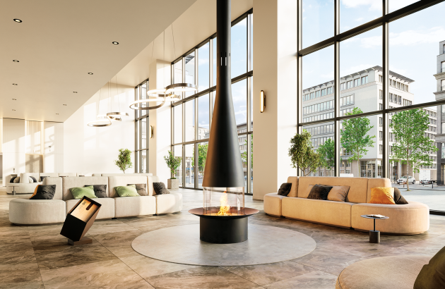 Die Silhouette dieses Design-Totems ist zugleich warm und freundlich ist und ermöglicht es allen Gästen, das Feuer beobachten, unabhängig davon, wo sie sich im Raum befinden. Ein Vorteil, der sowohl private Designliebhaber als auch Fachleute aus dem Hotel- und Gaststättengewerbe überzeugt, von denen viele den Filiofocus in ihren Empfangs- und Entspannungsbereichen oder Restaurants installiert haben.